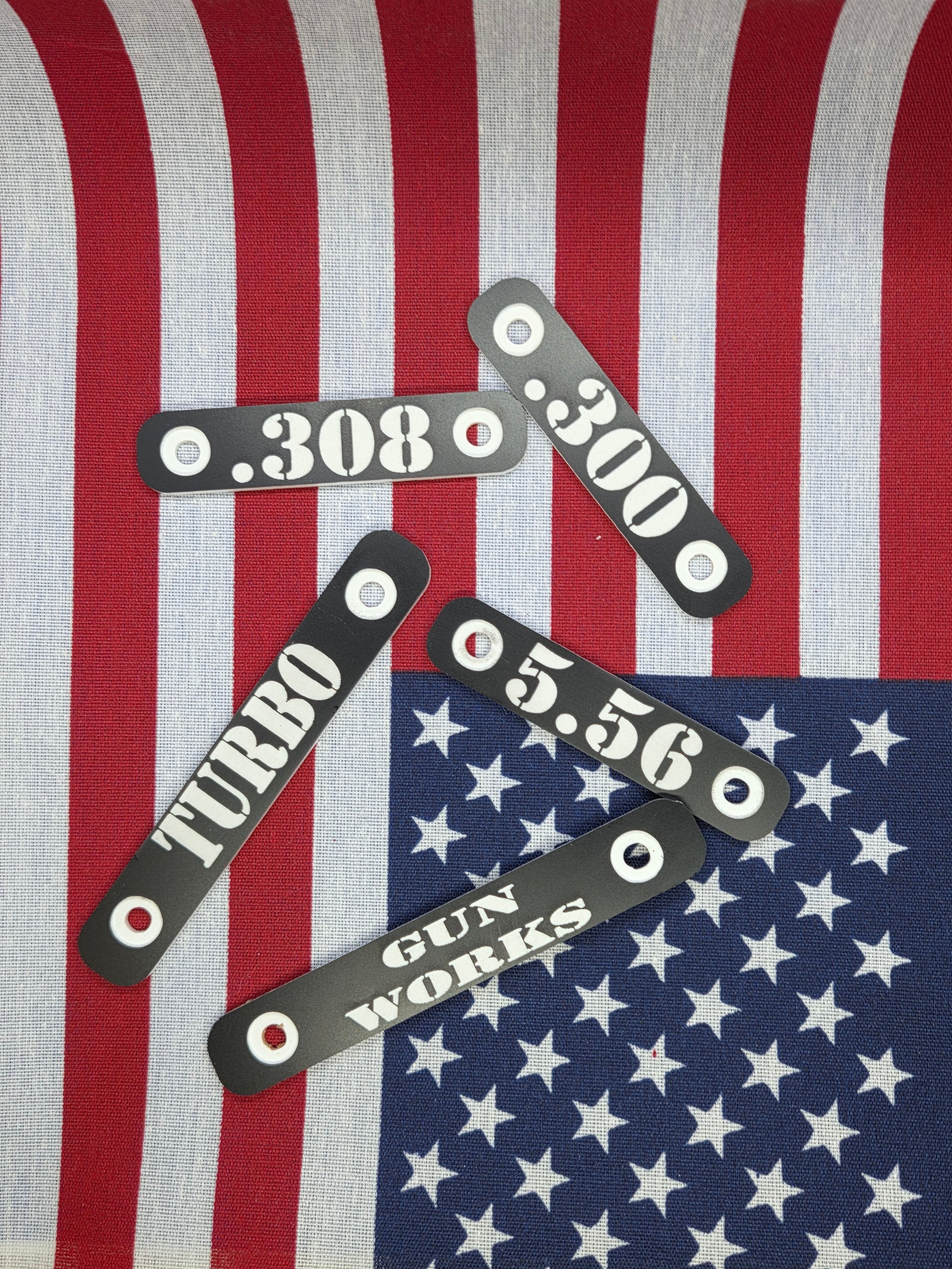 Nameplates for AR Rails. Pick your caliber, or your favorite words to add to your handrail! Best way to keep from mistaking that .300 for your 5.56!