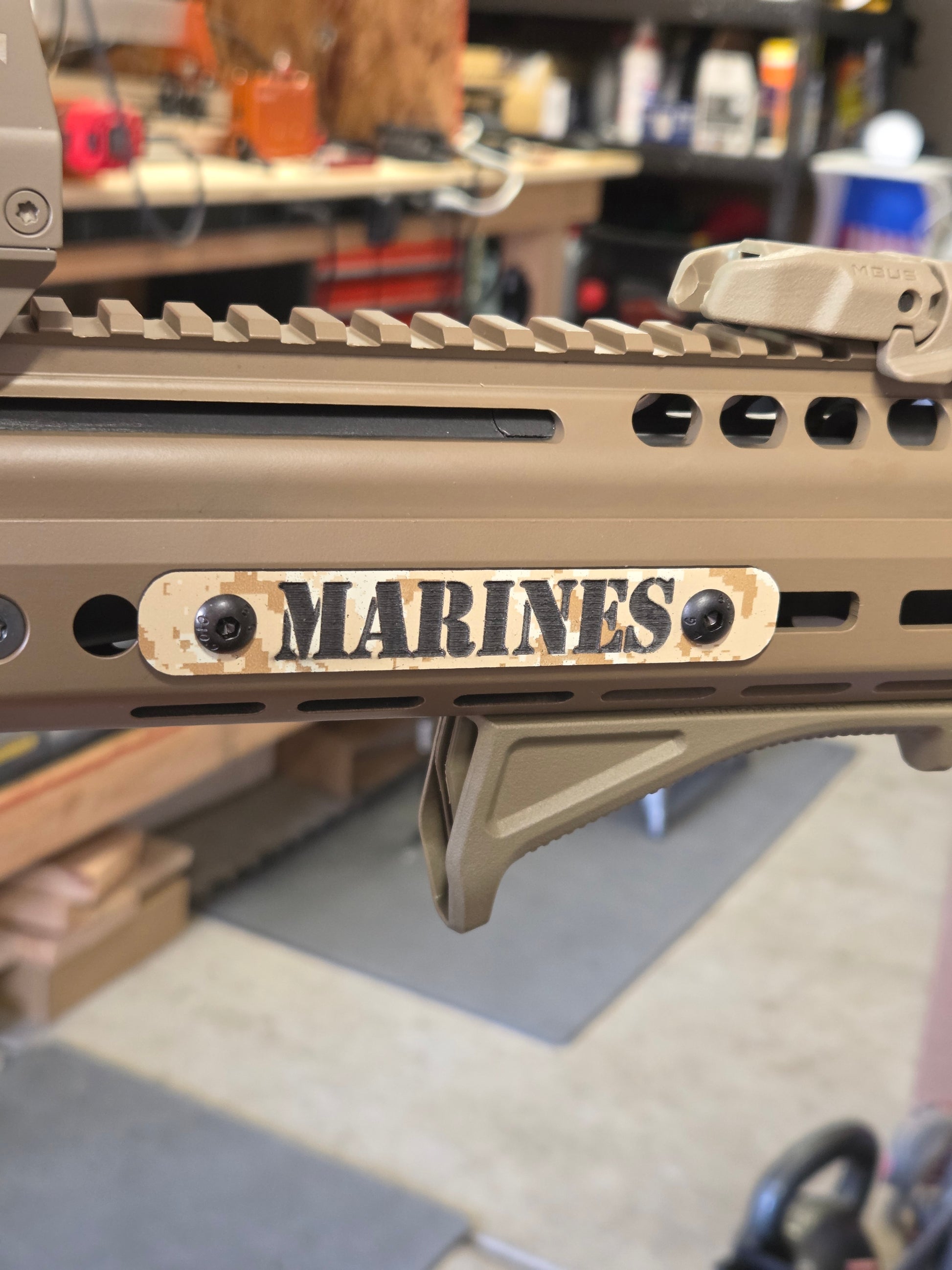 Check out our new low-pro custom nameplates. Just 1/16th in. thick with all the detail! Fits all standard M-Lok rails. Don't throw a .300BLK into your 5.56! Spice up your favorite rails with our nameplates.